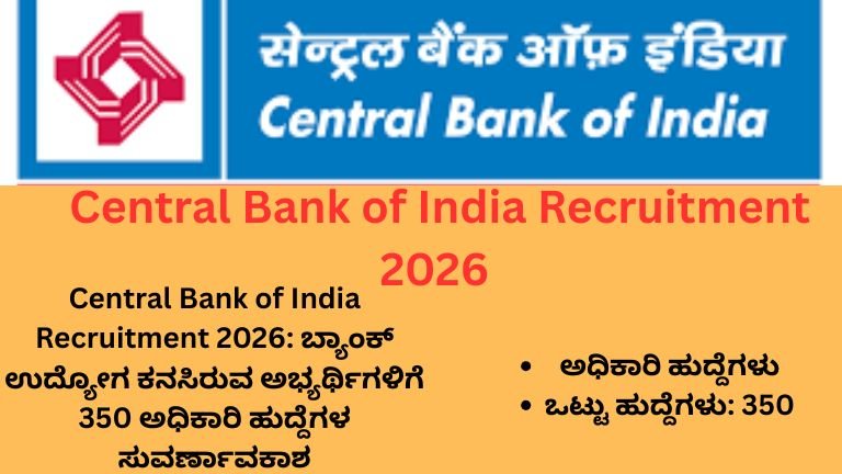 ಸೆಂಟ್ರಲ್ ಬ್ಯಾಂಕ್ ಆಫ್ ಇಂಡಿಯಾ ನೇಮಕಾತಿ 2026: ಬ್ಯಾಂಕ್ ಉದ್ಯೋಗ ಕನಸಿರುವ ಅಭ್ಯರ್ಥಿಗಳಿಗೆ 350 ಅಧಿಕಾರಿ ಹುದ್ದೆಗಳ ಸುವರ್ಣಾವಕಾಶ ಬ್ಯಾಂಕ್ ಉದ್ಯೋಗವೆಂದರೆ ಭಾರತದಲ್ಲಿ ಅನೇಕ ಯುವಕರ ಕನಸಿನ …