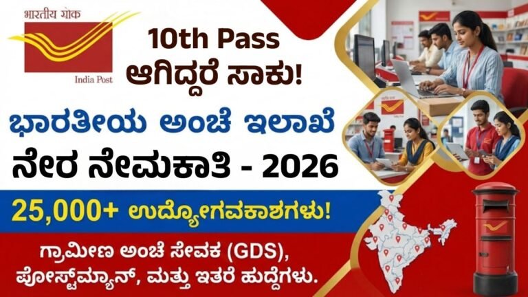 25,000+ ಹುದ್ದೆಗಳು: ಪರೀಕ್ಷೆ ಇಲ್ಲ, 10th Pass ಸಾಕು, ನೇರ ನೇಮಕಾತಿ। Postal Department Recruitment 2026 ಸರ್ಕಾರಿ ಕೆಲಸದ ಕನಸು ಕಾಣುತ್ತಿರುವ ಕನ್ನಡಿಗರಿಗೆ ಇಲ್ಲಿದೆ ಒಂದು …